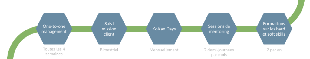 Chaque salarié KōKan est évalué sur l’apport en mission, son développement personnel et sa contribution.